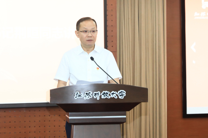 结合正在开展的学习贯彻习近平新时代中国特色社会主义思想主题教育,荆晅要求,一是入脑入心入行,持续推进主题教育走深走实。全校党员干部要牢记嘱托、感恩奋进,带着嘱托学、带着感情学、带着责任学,做到“学深悟透促内化”“常思常悟促深化”“知行合一促转化”,紧紧围绕服务江苏全民终身学习体系构建和学习型社会建设,高质量发展职业教育和开放教育,创新发展社会教育和老年教育,做教学方式变革的探索者、多元教育服务的提供者、学习型社会建设的推动者和教育公平的促进者。二是落实落细落准,强化成果运用解决发展难题。要用好习近平总书记倡导的“深、实、细、准、效”五字诀,做到“调研发展出实招”,坚持把“当下改”和“长久立”结合起来,实现“检视整改见实效”,要把立德树人作为检验学校一切工作的根本要求,牢固树立“师生至上”理念,认真学习借鉴“浦江经验”,坚持党建引领,保证“立德树人显成效”。三是愿为敢为善为,书写高水平开放大学新答卷。全体党员干部要旗帜鲜明讲政治,坚持不懈用习近平新时代中国特色社会主义思想武装头脑、指导实践、推动工作。要提振精神敢担善为,始终牢记省委省政府赋予的领军全省社会教育的重托,以推进学校高质量发展的实际行动把党的二十大精神落到实处,坚定走好新时代开放大学的高质量发展之路,办好服务江苏人民的大学。