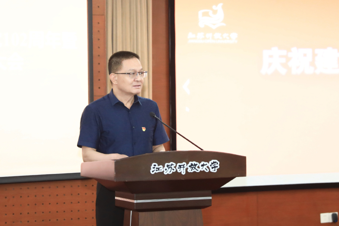 荆晅代表学校党委向全校各级党组织和广大党员致以节日的问候,向在学校求索、建设、改革、发展过程中作出突出贡献的老党员、老同志,致以崇高的敬意,向受表彰的先进基层党组织和个人表示热烈的祝贺。