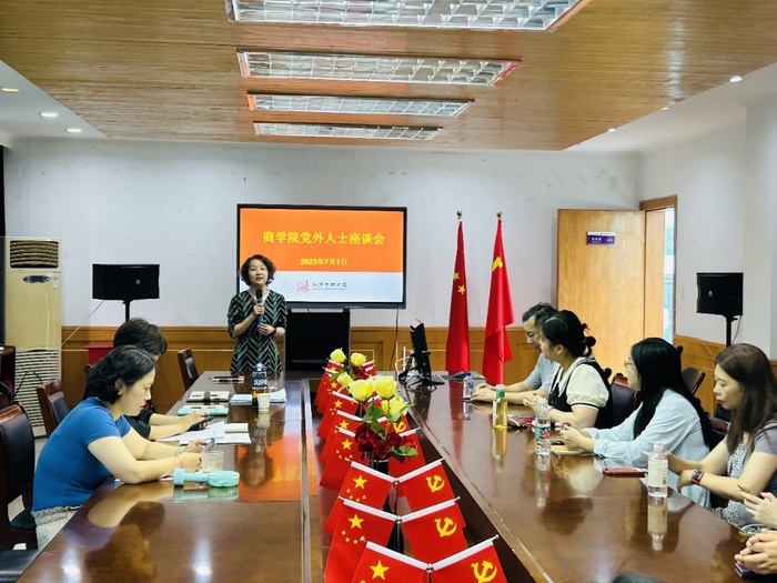 7月1日上午9:30,商学院在东校区综合楼411室召开党外人士座谈会,全体院领导、民主党派、非党员高级知识分子等20余人参加会议。会议由商学院党总支副书记丁晓华主持。