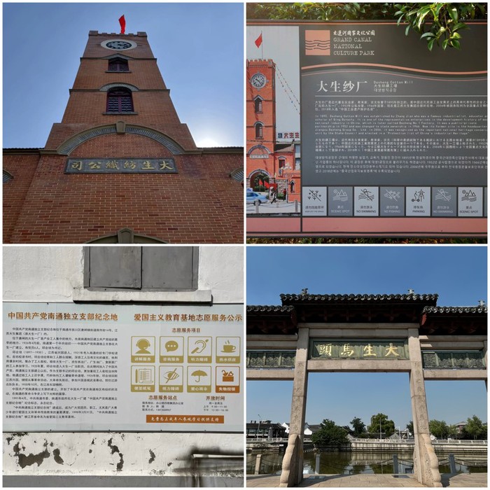 下午,实践团来到大生纱厂,大生纱厂是南通近代化发展的核心企业,以它为母体直接派生了69个近代企事业。大生纱厂的成功创立奠定了南通成为“中国近代第一城”的基础。在大生纱厂,实践团队先后参观了大生码头、大生纱厂钟楼、南通最早的党组织——“中国共产党南通独立支部纪念地”纪念碑。
