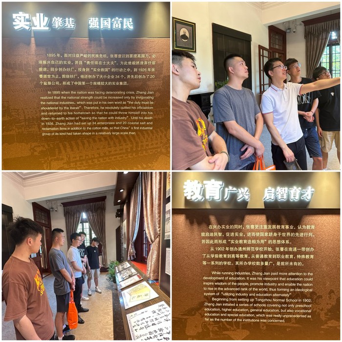 为深入学习宣传贯彻习近平新时代中国特色社会主义思想,全面贯彻落实党的二十大精神,组织学生在调研中了解国情社情民情,引导和帮助学生在实践中受教育、长才干、作贡献,7月5日,建筑工程学院团总支组织发展成就观察团来到南通,通过参观南通博物苑、张謇故居、走访大生纱厂,学习杰出实业家张謇的爱国主义情怀和实业报国的精神,坚定听党话、跟党走,奋进新征程的信心决心。