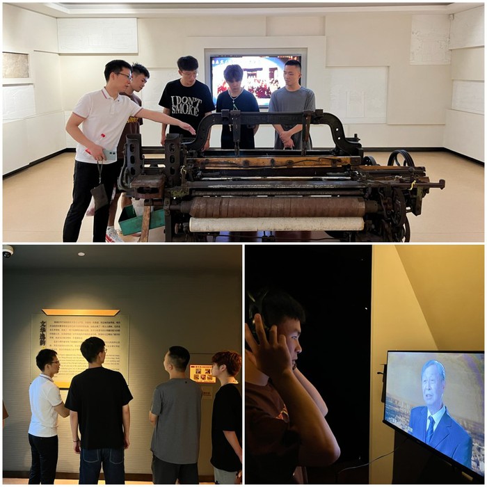 在调研过程中,实践团采访到一位大生纱厂的老员工黄老先生,他向团员们详细讲述了大生纱厂从新中国成立以来的新旧变化,讲了许多关于企业创办者张謇实业救国的故事。聆听黄老先生的动情讲述让同学们更深刻地了解到民族企业家张謇创办实业、发展教育、兴办社会公益事业的伟大事业和光辉成就。访问中还得知黄老先生自90年代以来自发负责大生纱厂的宣传黑板报,三十年如一日,坚持做到黑板报每月一更,为推进大生纱厂的精神文明建设做出了很大的贡献。黄老先生这一行为让同学们深受感动,表示今后也将勤动笔墨、提升学习质量,讲好中国故事。