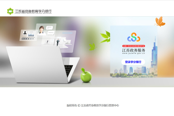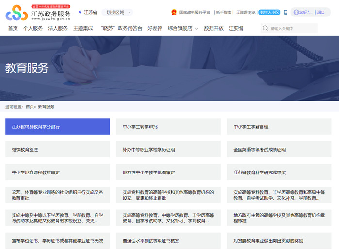 近日,江苏省终身教育学分银行正式接入江苏政务服务网,学分银行个人用户体系纳入江苏政务服务网统一管理。自此,用户可以通过江苏政务服务网“个人服务”栏目的“教育服务”版块下“江苏省终身教育学分银行”登录,也可以直接访问学分银行网络服务平台,经江苏政务服务网统一身份认证后登录。