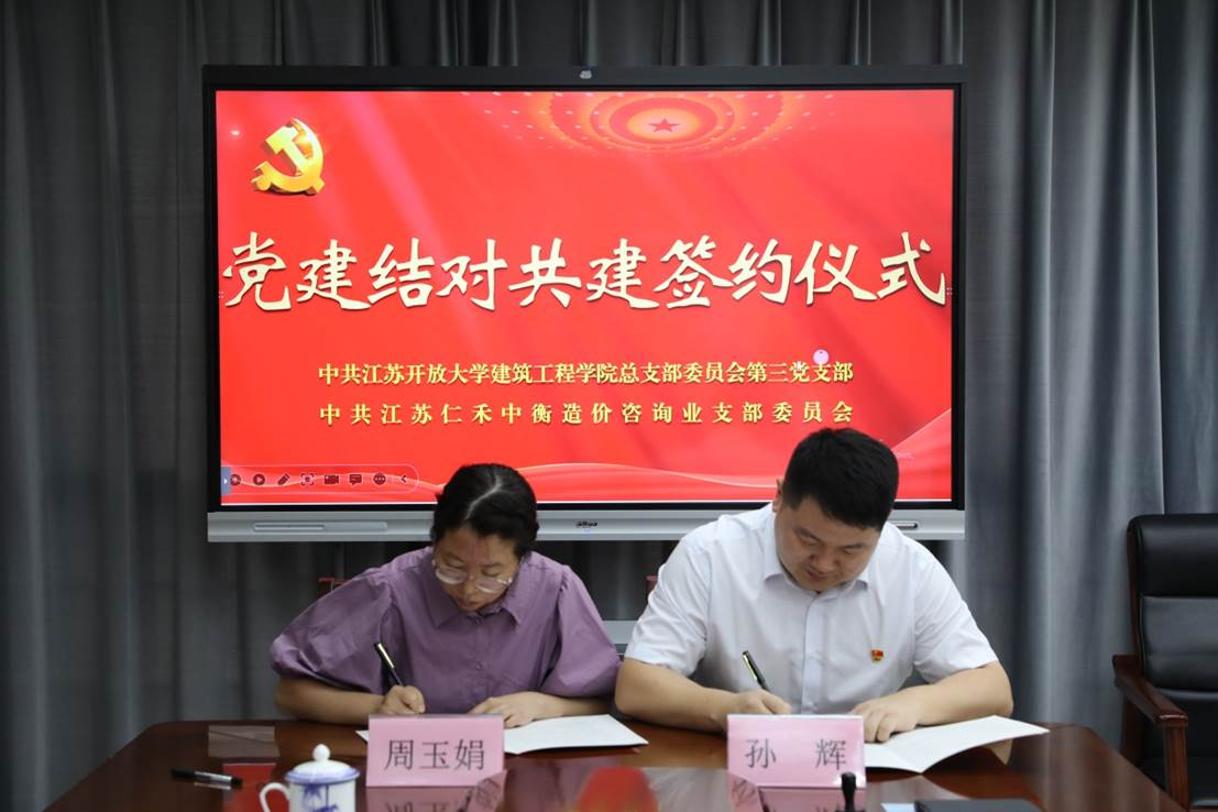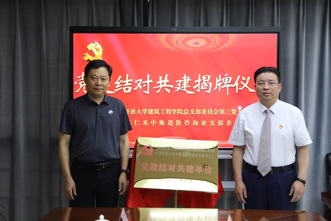 为凝聚党建合力,构建党建工作新格局,携手打造优势互补、资源共享新模式,7月21日,建筑工程学院党总支第三党支部与江苏仁禾中衡咨询集团党委造价咨询业党支部开展党建共建揭牌签约活动。校党委常委、副校长吴光林,江苏仁禾中衡咨询集团党委书记、董事长梁泽泉出席并揭牌。建筑工程学院党总支书记曹永、第三党支部书记周玉娟、党员徐德,江苏仁禾中衡咨询集团总经理卫凯(校友)、造价咨询业党支部书记孙辉参加揭牌签约仪式。