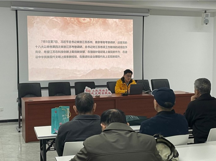 为深入学习贯彻习近平新时代中国特色社会主义思想,用党的创新理论统一思想、统一意志、统一行动,充分发挥党建在社区工作的引领作用,11月10日下午,公共管理学院教师徐志毅在鼓楼三汊河社区开展以学习习近平总书记在江苏考察时重要讲话精神和《论党的自我革命》为主题的公益讲座,社区党委班子成员、党员和部分居民参加活动。