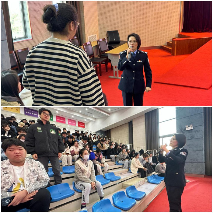 为提高学生的心理健康水平,增强师生反诈安全意识,11月14日中午,建筑工程学院在应天校区体艺楼406举办心理健康与反诈安全讲座。此次讲座特邀建邺公安分局内保大队大队长王雪萍、建邺公安分局南苑派出所社区民警谢鹏主讲,南苑派出所副所长李运动、校保卫处处长左克军出席活动。建筑工程学院全体辅导员以及22级、23级学生代表共300余人参加,讲座由建筑工程学院党总支副书记徐亚主持。