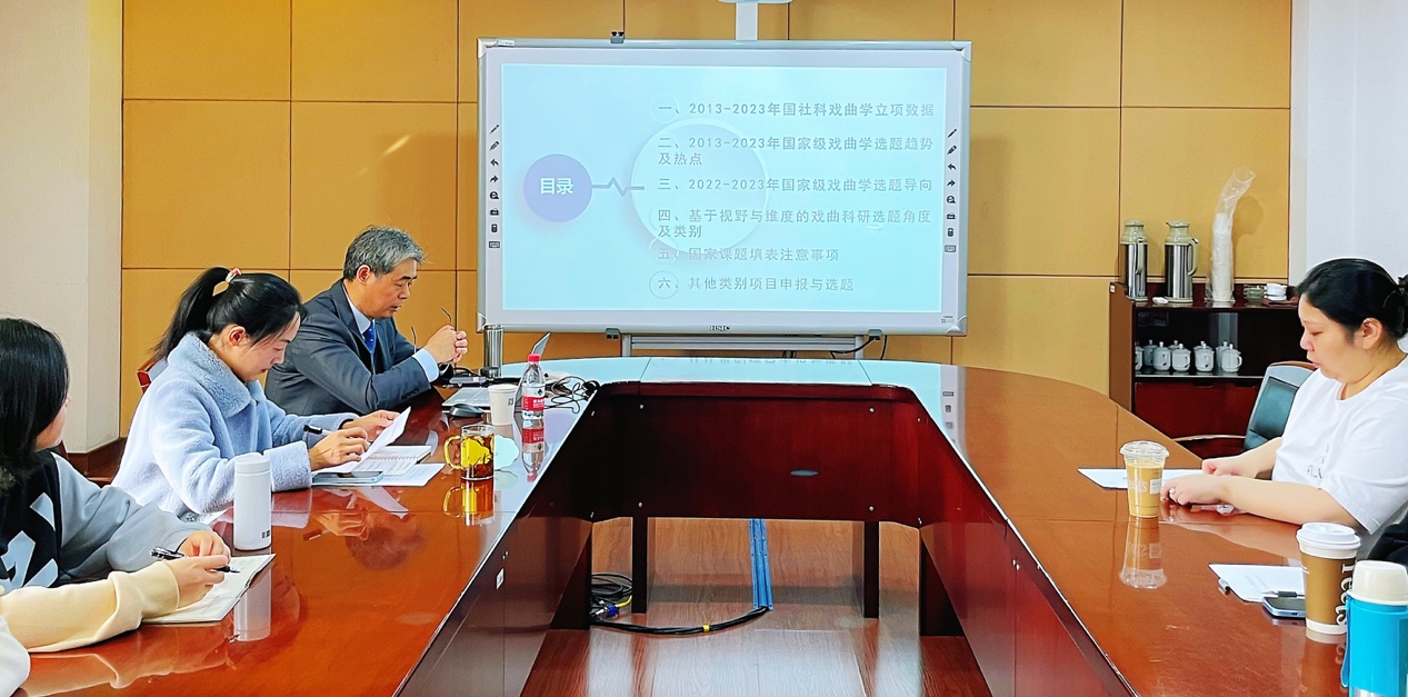 在讲座中,孙教授首先分析和总结了近十年国家社科基金艺术学戏曲类申报项目的动态以及立项课题的特点,对选题视角、题目架构等方面做了具体的举例论证。然后,孙教授对国家级戏曲学选题的趋势与热点、选题导向、课题填表注意事项以及其他类别项目申报与选题进行了讲解和指导,使教师们对于国家社科基金艺术学项目的申报要求有了更深入的了解,也为科研选题提供了新的思考方向。讲座最后,戏曲系青年博士教师就目前课题申报的相关问题与孙教授进行了充分的交流,孙教授针对教师课题申请书中的具体问题进行了一对一的深入剖析,并给予了相应的意见和建议。孙教授的整个讲座内容丰富、实用,对于教师们的学术研究具有重要的指导意义。