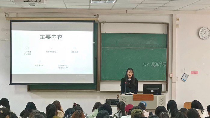 2022级现代物流管理3班刘思敏以“等风来,不如追风去”为主题,结合成长经验和当下社会热点话题,提出作为大学生首先要学会认识自我,并鼓励大家在日常学习与生活中勇于挑战自己,注重学习效率,学会高质量交友,保持良好心态。