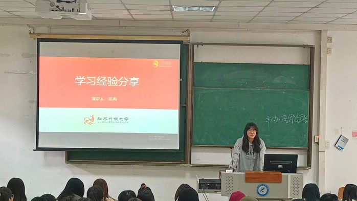 2022级跨境电子商务班谢宇结合自身学习经验,从树立目标、自觉自制、学习方法、学习途径、习惯养成五个方面进行分享,强调让优秀成为一种习惯,人人都可以通过努力而养成。