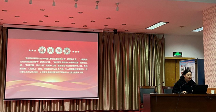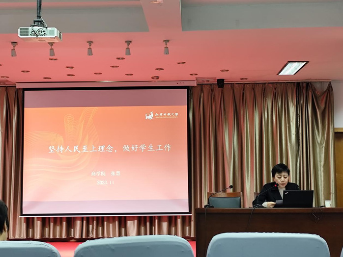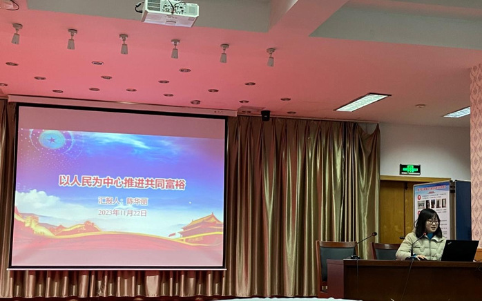 商学院党总支委员徐永兵首先以《以人民为中心建设高水平新型大学》为题,从“人民是我们党执政的最大底气、人民是我们党执政的依靠力量、人民幸福是我们党执政的价值导向、人民是我们党执政的评价主体以及扎根江苏大地,建设高水平新型大学”五个方面进行了分享。张慧以《坚持人民至上理念,做好学生工作》为题,从“共产党就是给人民办事的、学生工作面临的挑战、人民至上理论对学生工作的启示、落实‘给学生办事’的实现路径”四个方面进行了分享。陈向南以《一以贯之坚持人民至上》为题,从“人民至上是马克思主义政党的显著标志、人民至上是坚持中国共产党党性的根本要求、在中国梦的实践中践行人民至上以及在高水平开放大学的建设中坚持人民至上”四个方面进行了分享。陈华丽以《以人民为中心推进共同富裕》为题,从“共同富裕是坚持以人民为中心的发展思想的根本体现、依靠人民是推动共同富裕的根本力量、由人民评判是实现共同富裕的根本标尺以及在工作中坚持以人民为中心的发展思想推进共同富裕”四个方面进行了分享。最后,徐永兵同志进行总结,我校的办学定位是服务江苏人民的大学。我们要坚持以人民为中心,以立德树人为根本任务,以促进学生的全面发展和增进民生福祉为价值追求,为建设高质量发展的江苏开放大学添砖加瓦。