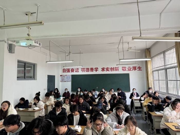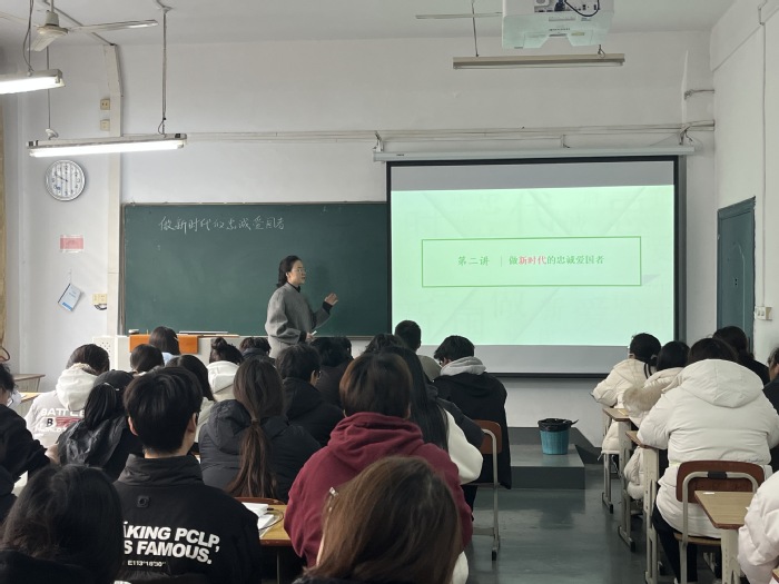 11月30日上午,马克思主义学院思想政治教育教研部教师宋小洪在东校区106教室以“做新时代忠诚爱国者”为主题,向2023级室内艺术设计2、3班同学讲授公开课。院长季海菊、副院长陆洋及10余名教师现场观摩。