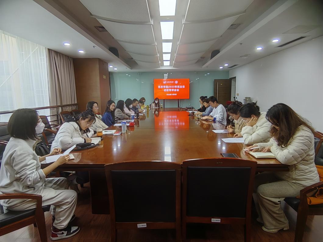 为落实立德树人根本任务,切实加强班主任队伍建设,12月6日,艺术学院在定淮门校区二楼第三会议室举行2023年度班主任述职考评会议。会议由党总支副书记张洁主持,学院领导班子、全体班主任、辅导员参加了会议。