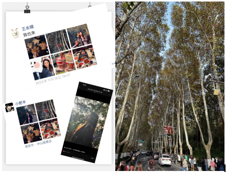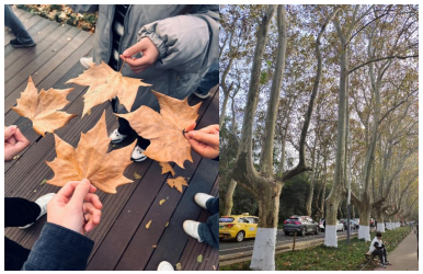 金黄的梧桐,飘飘悠悠地落下来,轻轻地踩在树叶上,发出清脆的破裂声,伴着秋风阵阵,整个人就像融入一幅秋色的油画里。在行走的过程中,彭晓老师为学生们详细介绍了南京梧桐大道的历史和背后的故事。从它的规划设计,到每颗梧桐树的历史渊源。学生们在聆听讲解的同时,也积极参与到讨论中来,班级还举办了摄影活动,通过自己的方式记录梧桐大道独特的景色和文化内涵。
