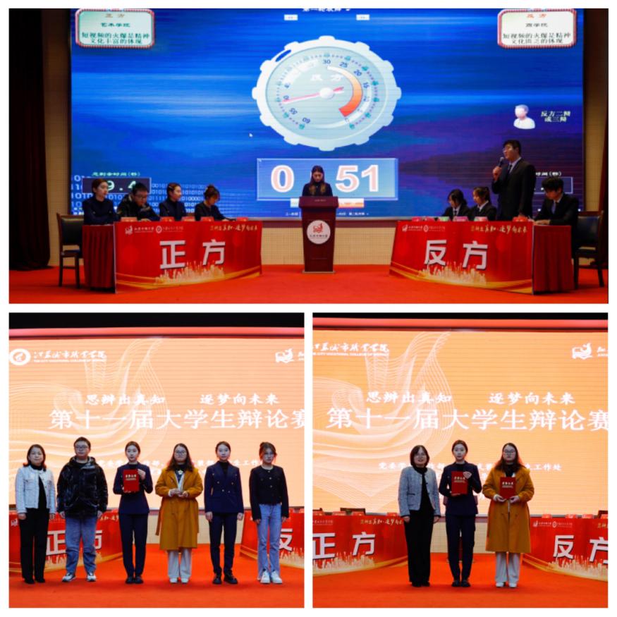 12月6日晚,学校第十一届“思辨出真知 逐梦向未来”大学生辩论赛决赛在应天校区体艺馆406报告厅举行。由艺术学院宋文清、秦瑶、陈展晟、袁琳琳、李灵儿等五名同学组成的辩论队勇夺此次辩论赛冠军。
