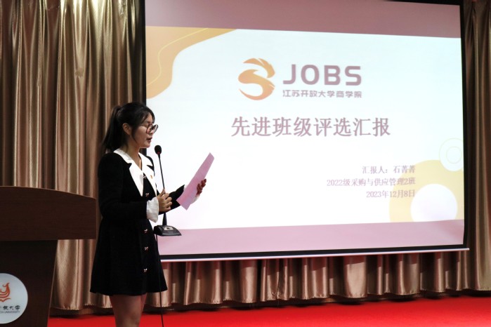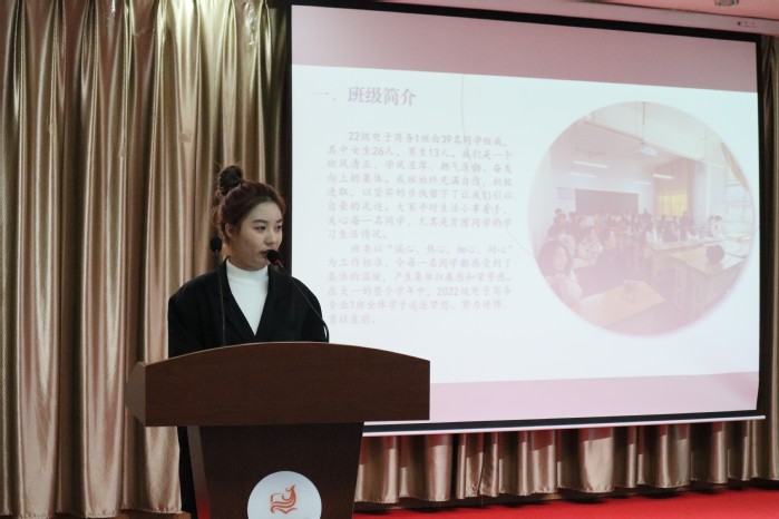 经过首轮评选,共有5个班级进入学院决赛。活动开始,主持人介绍本次决赛的评选流程和规则,接着各班代表按照抽签顺序依次上台汇报和展示,通过PPT等形式全面展示班级的建设成就、特色亮点及未来规划,突显班级的凝聚力、良好的学习态度和精神风貌。经评委老师打分,22电子商务1班、22大数据与会计5班、22采购与供应管理2班被推荐为2023年校级先进班级候选班级。