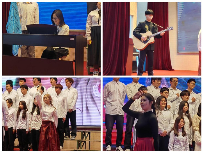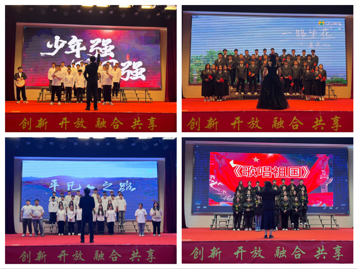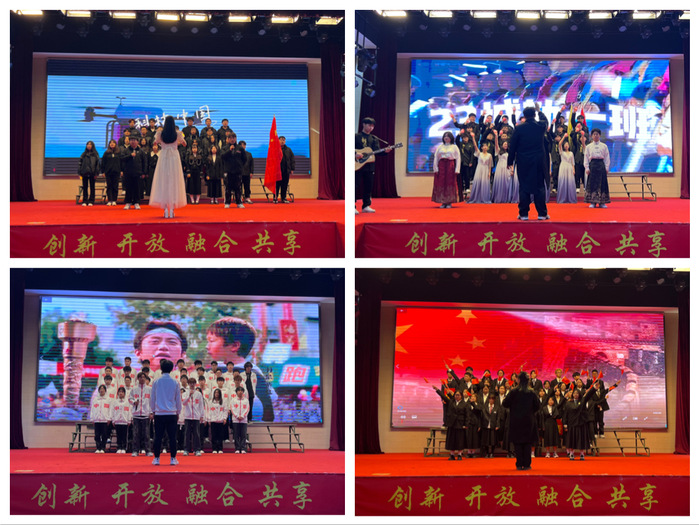 本次参赛的是学院2023级全体班级,共12支队伍。每支队伍选取一首歌曲进行展示,各参赛队伍特色鲜明的服装、丰富新颖的表演形式、气势磅礴的歌声、奋发向上的精神风貌向观众们呈现了一场视听盛宴。随着《保卫黄河》《星辰大海》《国家》《如愿》《少年中国说》《奔跑》等一首首经典歌曲唱响,唱出了中华民族自强不息的伟大精神,点燃了在场所有师生的爱国热情,现场掌声雷动,热血沸腾!