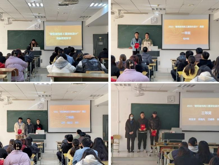 会上,老师们为学院2023年度“建筑装饰施工图深化设计”竞赛中获奖的同学进行颁奖。
