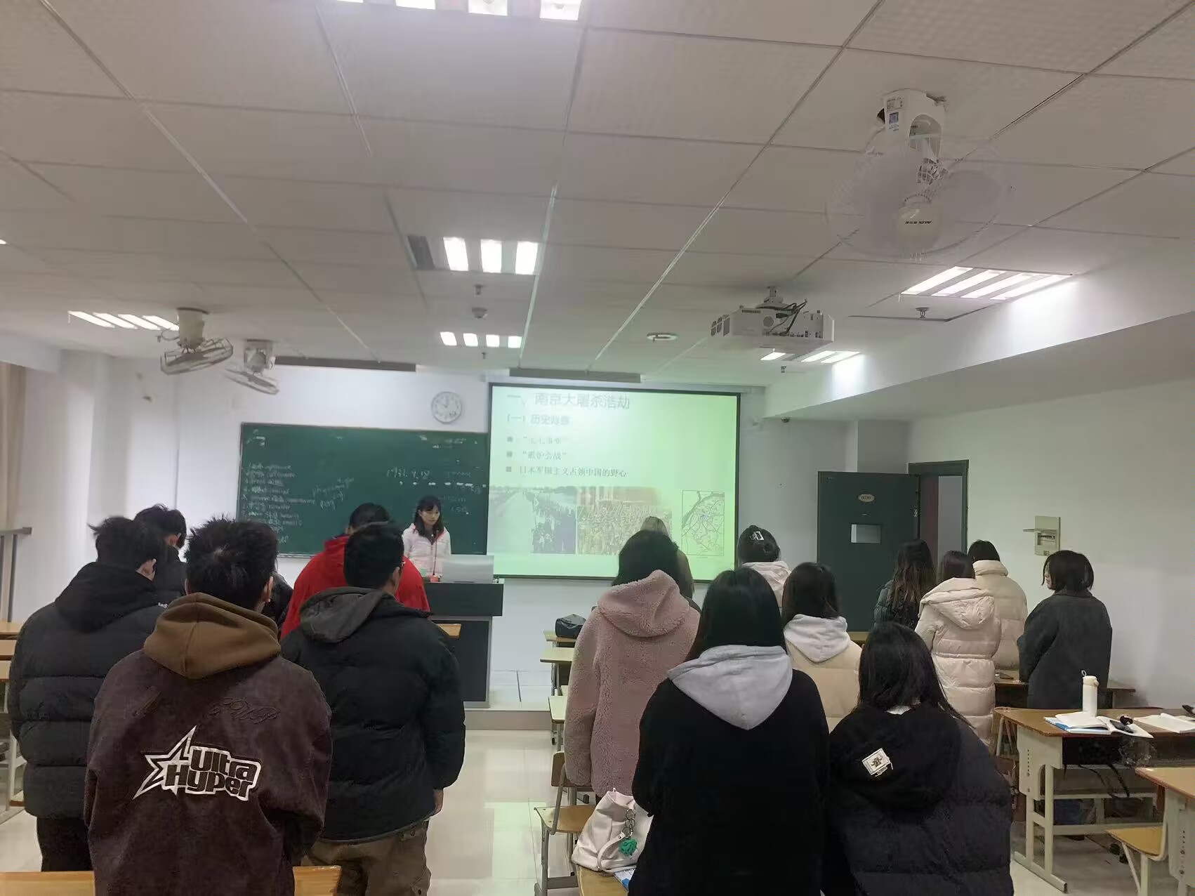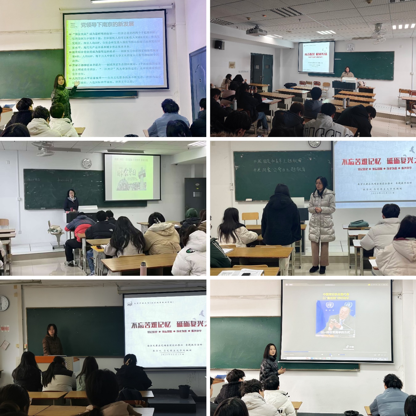 在一年级新生班级上午的首节课上,我院教师们按照教务处提供的教学参考课件,怀着悲痛的心情,与同学们共同回忆了南京大屠杀浩劫、国家公祭日的设立,引导学生铭记历史,奋勇前行,培植学生善待生命、追求和平的人文主义精神,启发学生对中华民族及全人类命运的深层思考。