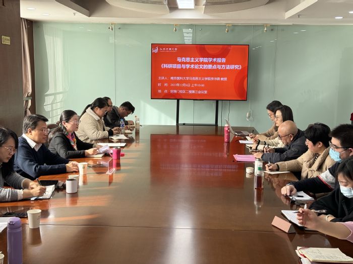 12月6日,马克思主义学院在定淮门校区二楼第三会议室召开专题学术报告会,特邀南京医科大学马克思主义学院教授、校医学史研究中心主任李沛霖做报告。会议由季海菊院长主持,学院全体院领导、教职工及部分辅导员老师参加会议。