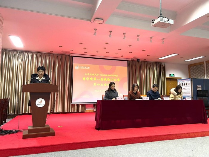 12月13日下午14点30分,商学院在定淮门东校区综合楼5楼报告厅召开第一届教职工大会第四次会议。大会由学院党总支副书记、执委会主任丁晓华主持。