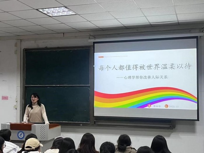 通过生动的故事案例和直观的多媒体画面,徐永珍带领同学们进行了一场心灵旅行。她以人际交往的重要性为切入点,细致分析大学生可能面临的各类人际关系问题及其产生原因,详细指导同学们解决人际冲突的正确做法,构建和谐人际关系的原则及注意事项,向同学们传授沟通的秘籍。
