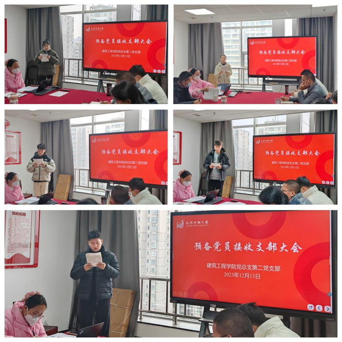 12月13日上午,建筑工程学院党总支第二党支部在应天校区综合楼1019会议室召开接收预备党员支部大会。支部全体正式党员、5名发展对象及其入党介绍人参加会议,会议由支部书记仲青主持。