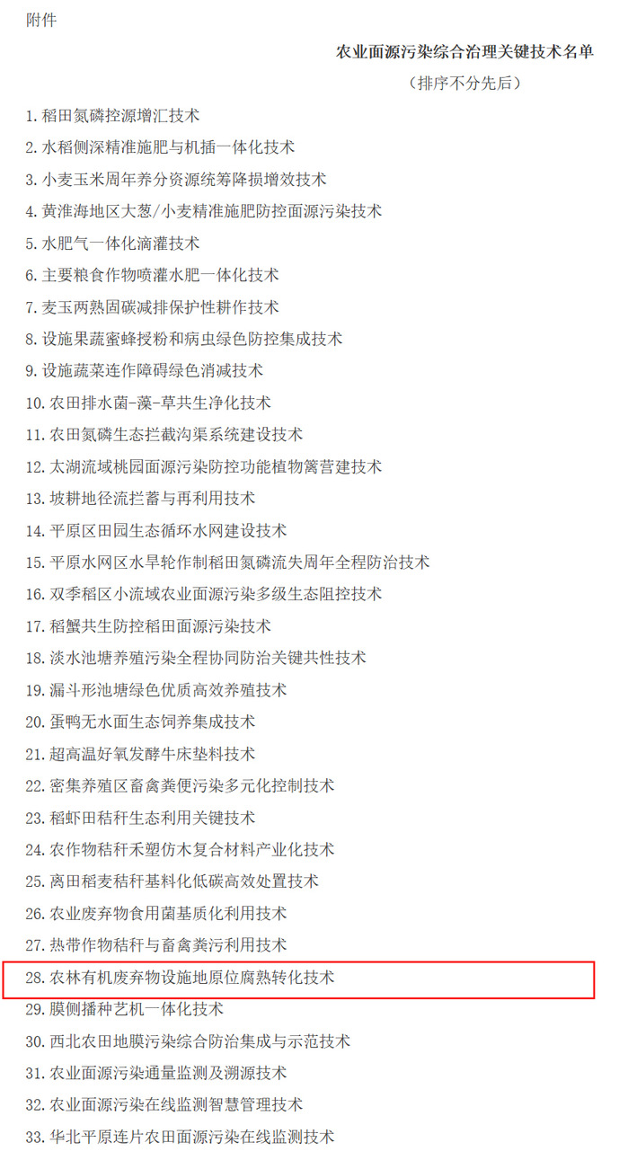 近日,农业农村部农业生态与资源保护总站公布推介了全国33项农业面源污染综合治理关键技术。我校乡村振兴学院成果“农林有机废弃物设施地原位腐熟转化技术”入选。