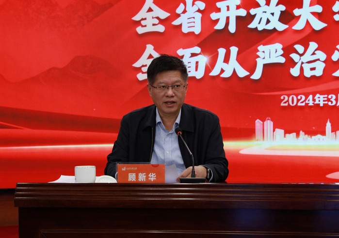 3月21日下午,我校召开全面从严治党暨警示教育大会。会议由党委副书记、校长丁荣余主持,党委书记荆晅作了《勇于自我革命强化责任担当以管党治党新成效凝聚高质量发展新动能》的报告,纪委书记、监察专员顾新华作了《深学细悟笃行党的自我革命重要思想以高质量纪检监察工作保障学校高质量发展》的报告,常州开放大学党委书记、校长顾锡宏,徐州开放大学副校长胡钊涵,江苏开放大学乡村振兴学院党总支书记叶海跃作了交流发言。