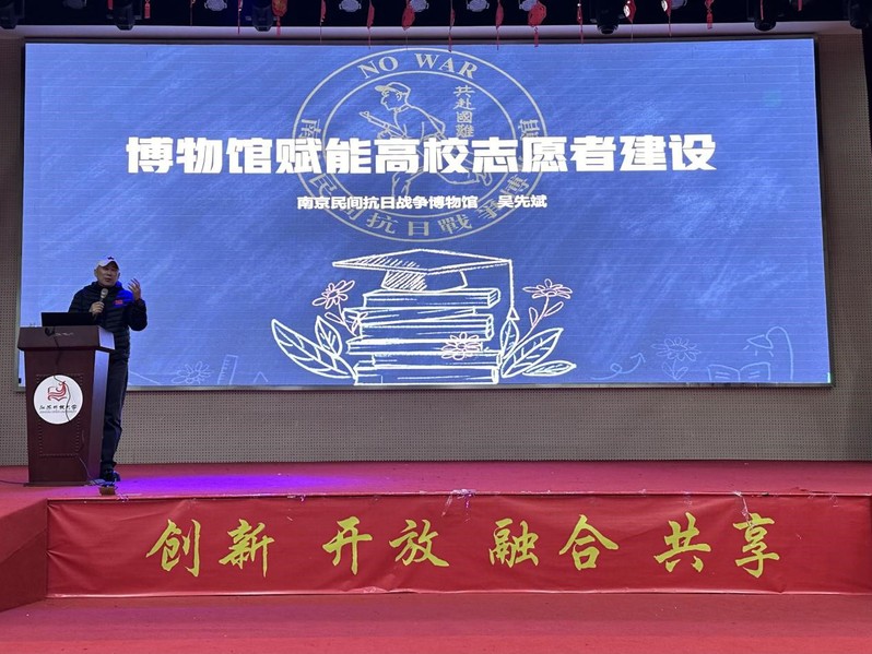 吴先斌馆长向在座的师生介绍了博物馆的定位和基本情况,以馆藏文献为脉络,讲解了博物馆的部分藏品。他在史料的抢救性收集工作中,见证这场战争里文明与野蛮、进步与落后、和平与战争的厮杀和较量,重历这5083个日日夜夜的抗争里中华儿女的悲伤痛苦与不屈反抗。他说,历史不是尘封的记忆,也不是埋没于纸堆的故事,而是前辈先贤留给我们的珍贵遗产,希望同学们铭记历史、明确责任、担当作为、砥砺前进。