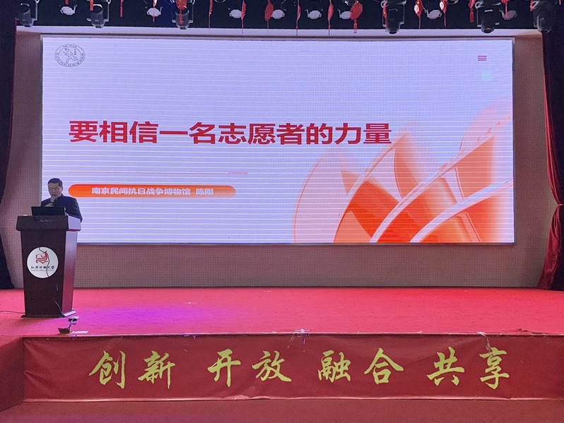 陈刚,在博物馆志愿服务了8年。他分享了自己讲解数百场,接待观众数千人次的志愿点滴,收获感悟已编写成了60万字的《讲解员日志》,并由南京出版社出版。