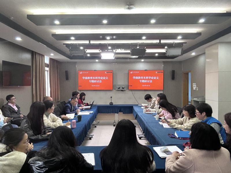 为进一步规范毕业论文的指导过程,提高老师的指导意识和专业能力,加强专业内涵建设,4月3日下午,教育学院在定淮门校区图书馆612会议室召开2024春季学期学前教育本科毕业论文专题研讨会。会议由学前教育专业负责人夏松主持,以线上线下相结合的方式进行,学院院长吴杰、副院长何康、学前教育本专科专业课负责人、24春毕业论文指导老师及办公室相关人员参会。