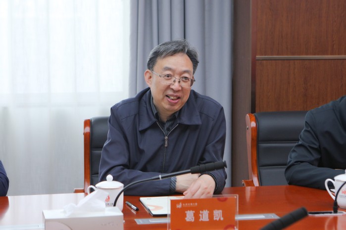 丁荣余对葛道凯一行的到来表示热烈欢迎和感谢,详细介绍了江苏开放大学的办学历史、基本情况、内涵建设与办学成果,重点介绍了我校在实施“三教”特色协同、搭建服务全民终身学习“立交桥”、高标准建设新校区、实施“数智创新型大学”构想等方面的创新和实践。