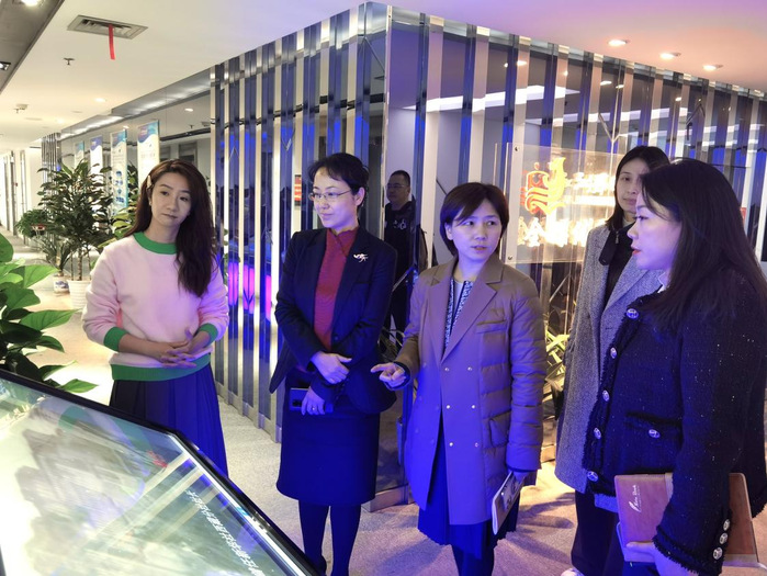 罗逾兰一行赴江苏省广播电视总台教育频道进一步洽谈合作时,实地参观了教育频道演播室、编辑机房、导播室、舞台等场所。座谈会中,党委宣传部部长杨濯介绍了我校第五届紫金奖·中国(南京)大学生设计展的准备情况,教育频道副总监吴珊、邵媛分别介绍了教育频道在展会策陈、资源开发、场所设备等方面得天独厚的优势和近年来取得的建设成果。设计学院相关人员展示了我校的布展方案草案和展示了基于产教融合设计的代表作品等,为开展后续更加深远的合作奠定良好基础。