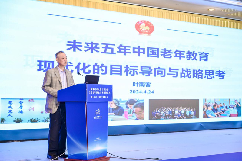 金陵老年大学副校长、中国老年大学协会学术委员会主任委员叶南客做了题为《未来五年中国老年教育现代化的目标导向与战略思考》主旨报告。叶南客认为全面推进中国式现代化对中国老年教育现代化发展提出了更高要求,据此,他提出了未来五年老年教育现代化的战略重点和任务:一是创新老年教育体制机制,着力改变我国老年教育“九龙治水”的现状;二是逐步构建以老年大学教育为主干、社区老年教育为基础、远程老年教育为辐射、社会教育为环境、数字化技术融入和多主体办学的新发展格局;三是构建政府引导、社会力量共同参与的老年教育资源供给格局;四是提升老年教育内涵和质量,营造浓厚的老年友好社会氛围;五是更新老年教育理念,探索老年教育模式创新;六是构建老年教育发展的一体化管理平台。