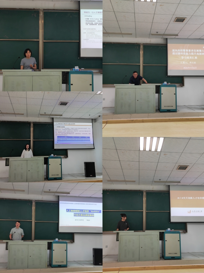 建筑工程学院于7月10日开展了人工智能通识课培训分享会。会议由院长助理黎雅乐主持,陈鑫、周文波、韦定兵、韩少阳、李天一等教师就参加“面向高校数智素养发展暨人工智能通识课师资能力提升高级研修班”培训的情况进行了汇报,建筑工程学院全体专任教师参加本次会议。
