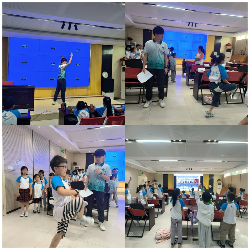 清脆的下课铃声响起来了,陈润同学带领孩子们一起舞动课间操。“一二三四,伸展运动!”在同学们的示范和口号声中,孩子们认真地伸臂、踢腿、跳跃。一套充满童趣的课间操,不仅驱散了久坐的疲惫,更让欢声笑语在大教室里萦绕。这短暂而珍贵的课间时光,成为孩子们舒展筋骨、放松心情、增进伙伴情谊的快乐源泉。