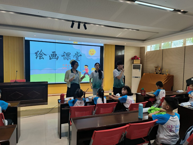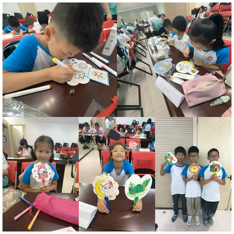 艺术是心灵的另一扇窗。在绘画课堂上,周苗婧和蒋玥馨两位同学为孩子们准备了空白的素面团扇和各色颜料。当画笔饱蘸色彩落在扇面上,想象力也随之自由飞翔:有的孩子画下夏日的繁花似锦,有的孩子描绘自己最喜欢的小动物,还有的孩子用稚拙的笔触勾勒出温馨的家园。一把把小小的团扇,承载着孩子们对美的感知与表达,成为这个夏天独一无二的成长印记。