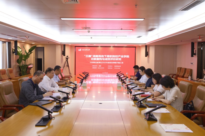 2025年8月27日下午,我校在定淮门校区16楼会议室召开了2025年度中华职教社规划课题开题论证会。本年度,学校首次获立中华职教社规划课题,由副校长张晓教授主持的课题“‘三融’战略导向下高职院校产业学院功能重构与成效评价研究”获立重点课题。教务处处长朱祎正高级工程师主持的课题“区域产教融合实践中心赋能‘三教’协同育人的探索与实践”获立一般课题。