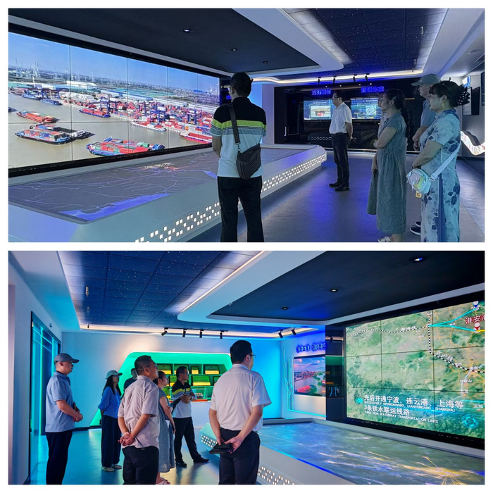 市交通集团港口物流集团公司信息技术板块相关负责人代表企业对学校来访表示欢迎,带领大家观看项目建设模型和运营视频,提升了大家对淮安港在国内交通运输体系中区位优势和重要枢纽作用的认知。