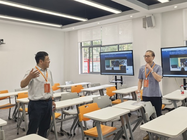 课间休息期间,耿焕同也分别与教师和学生进行了面对面交流,认真倾听师生们对于智慧教室使用感受的反馈,详细询问大家在教学和学习过程中遇到的问题,并鼓励大家对智慧教室的改进提出更多意见建议,共同创造更优质的教学和学习环境。同时,他也鼓励同学们珍惜良好的学习环境,勤思考、多实践,努力学习,不断提升自身的综合素质和能力,为未来的发展打下坚实的基础。