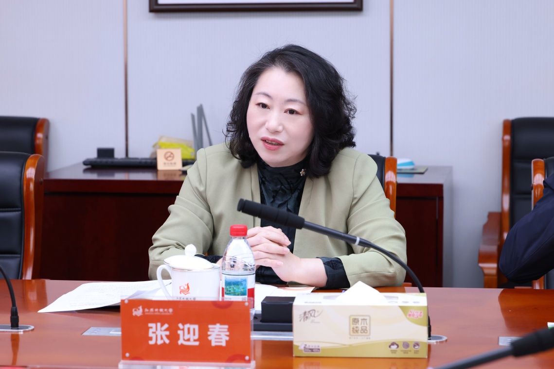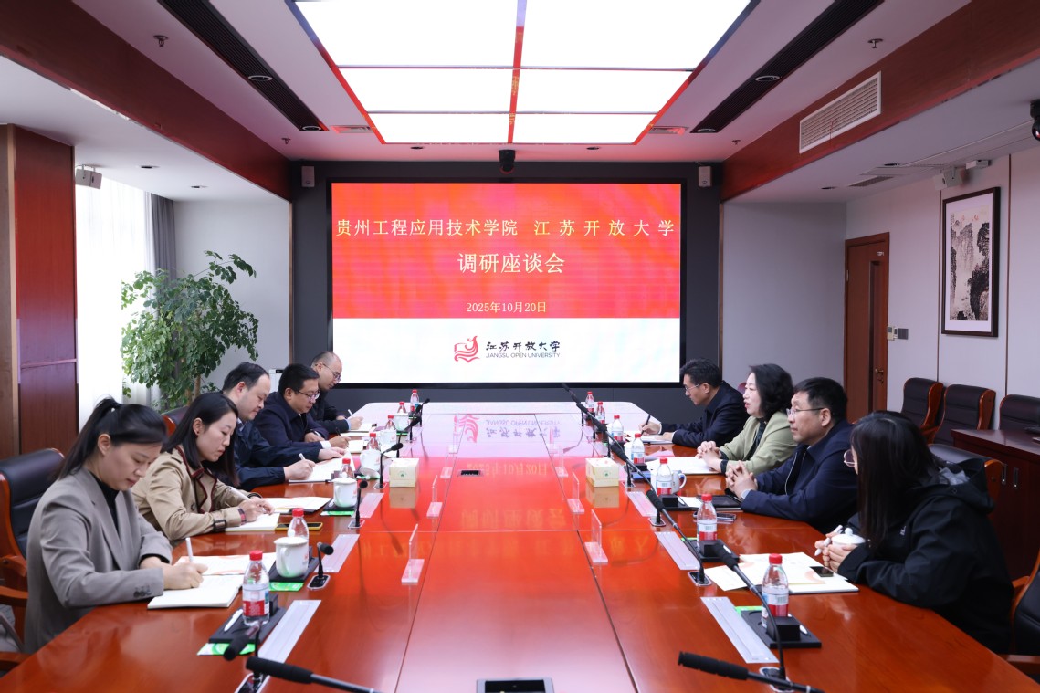 张迎春代表学校对贵州工程应用技术学院一行的到访表示欢迎,并全面介绍了我校的历史沿革与办学特色。她指出,学校始终秉承“服务全民终身学习”的办学使命,积极构建开放教育、职业教育、社会教育、老年教育“四类教育融合”的办学格局,致力于打造覆盖广泛、普惠优质的终身教育服务体系。近年来,学校以建设“数智创新型大学”为战略目标,在推进教育数智化、创新人才培养模式、优化师资队伍结构、提升科研创新能力以及强化学分银行建设等方面取得了良好成效。她表示,贵州工程应用技术学院在服务区域经济社会发展、深化产教融合、推动创新创业教育等方面特色鲜明、成果丰硕,希望双方未来进一步加强交流合作,相互借鉴、协同发展,共同为构建高质量教育体系贡献力量。