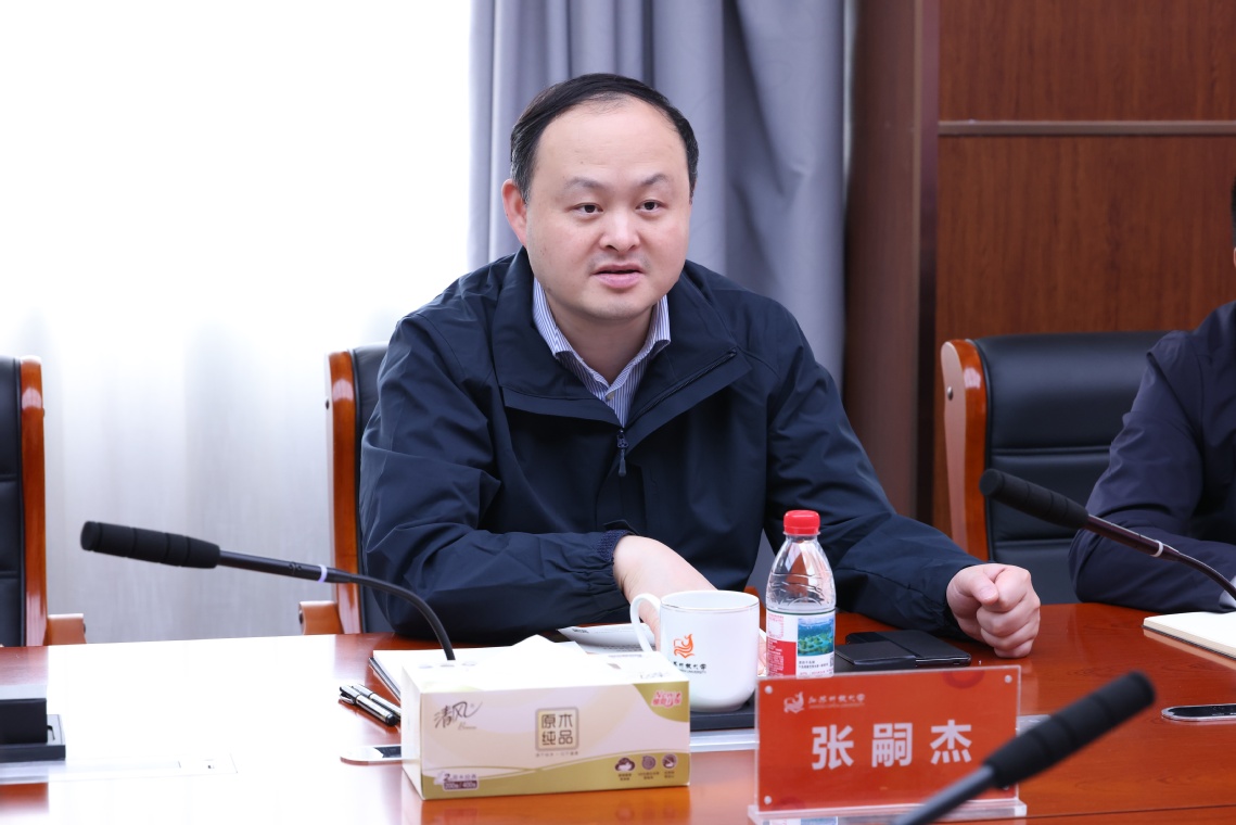 张嗣杰对我校的接待表示感谢,并对学校近年来在办学实践中取得的突出成效给予充分肯定。他介绍,贵州工程应用技术学院扎根毕节革命老区,紧密围绕国家西部振兴战略,在传承红色文化育人传统的同时,构建了以工科为主、多学科协调发展的应用型人才培养体系。他希望双方未来能建立常态化联系,在学科建设、人才培养与校企合作等方面深化资源共享,实现优势互补。