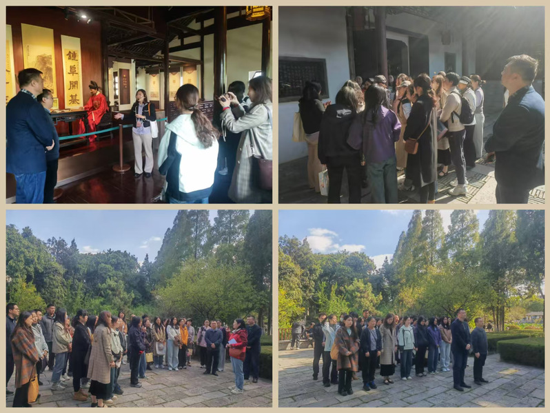 本次活动邀请教育学院江苏遗迹文学与文化研究中心李春燕老师担任文化向导。老师们驻足“胜棋楼”中,聆听明太祖朱元璋与徐达对弈的典故,感受历史人物与园林建筑的时空对话。步入莫愁水院,在莫愁女故居的石刻前,李老师通过典籍记载和民间口述,还原了这位传奇女子成为文化符号的演变历程。场馆参观后,全体教职工来到粤军阵亡将士墓前进行凭吊,通过张惠华老师的讲述,老师们对粤军将士与辛亥革命的历史意义有了更深的了解。