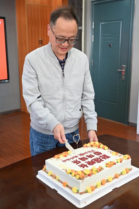 伴随着轻快的音乐,座谈会在分享荣休蛋糕的环节中推向高潮。学院分工会推上象征着开启荣休后新篇章的纪念蛋糕,耿强手持刀叉切开蛋糕,香甜的气息伴着笑声、掌声弥漫开来,为这场致敬教育者的仪式画上圆满的句号。