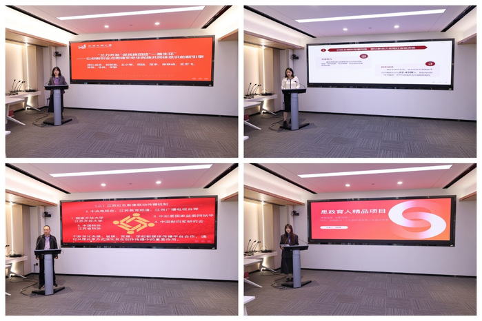 会上,学生工作处处长刘慧英、资源建设中心主任成蕾、设计学院教师王念春与刘高璐分别围绕各自主持的2024年校级思政精品培育项目《“三力齐发”让民族团结“一路生花”——探索各民族学生携手创新创业新模式》《云端思政:让理想信念教育持续“在线”》《江苏红色影像创作传播中心》《铸魂强基 光影逐梦——依托“苏楷影记”工作室的思政育人实践与探索》汇报了项目立项建设以来的推进举措和取得成效。