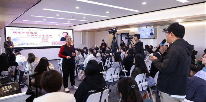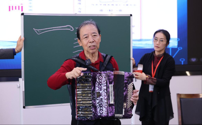 合影留念后,中国硬笔书法协会终身名誉主席庞中华先生以《快乐书法之花在开放大学盛开》为题,为同学们带来一场生动的开学第一讲。他以几十年书法教育实践,阐释了“快乐书法”的理念,写字当如做人,贵在持恒,乐在其中。他鼓励学员以快乐为笔,以热爱为墨,在方寸间修心养性、感悟文化之美。他现场用手风琴进行演奏,以音乐比拟书法的节奏与韵律,生动展示艺术的共通之美。他寄语同学们博览群书、以学养丰笔墨,让书法成为文化传承的方式,让学习成为人生最持久的幸福。