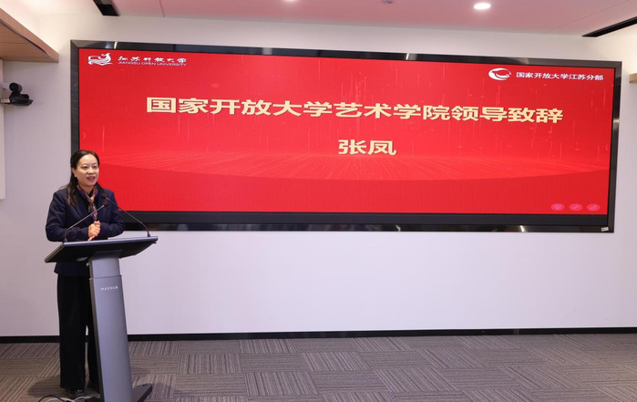 国家开放大学艺术学院副院长张凤发表致辞,她介绍了国开艺术学院自成立以来的发展规划与教学成果,对江苏开放大学努力将书法学本科专业打造为教学质量领先、支持服务规范、硬件设施完善的特色专业表示感谢,并祝愿每一位书法学学生都能在这段求学之旅中有所收获。