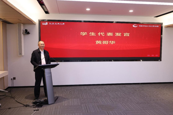 教师代表吕华江和新生代表黄哥华先后发言。吕华江老师在发言中分享了对书法学习的思考,鼓励同学们既要持之以恒临池磨砺,又要以理论滋养实践。学生代表黄哥华在发言中表示会珍惜在开放大学的宝贵时光,做一名勤奋的求知者,用未来更丰盈的自我、更美好的生活、更出色的成绩,回报母校的培养。