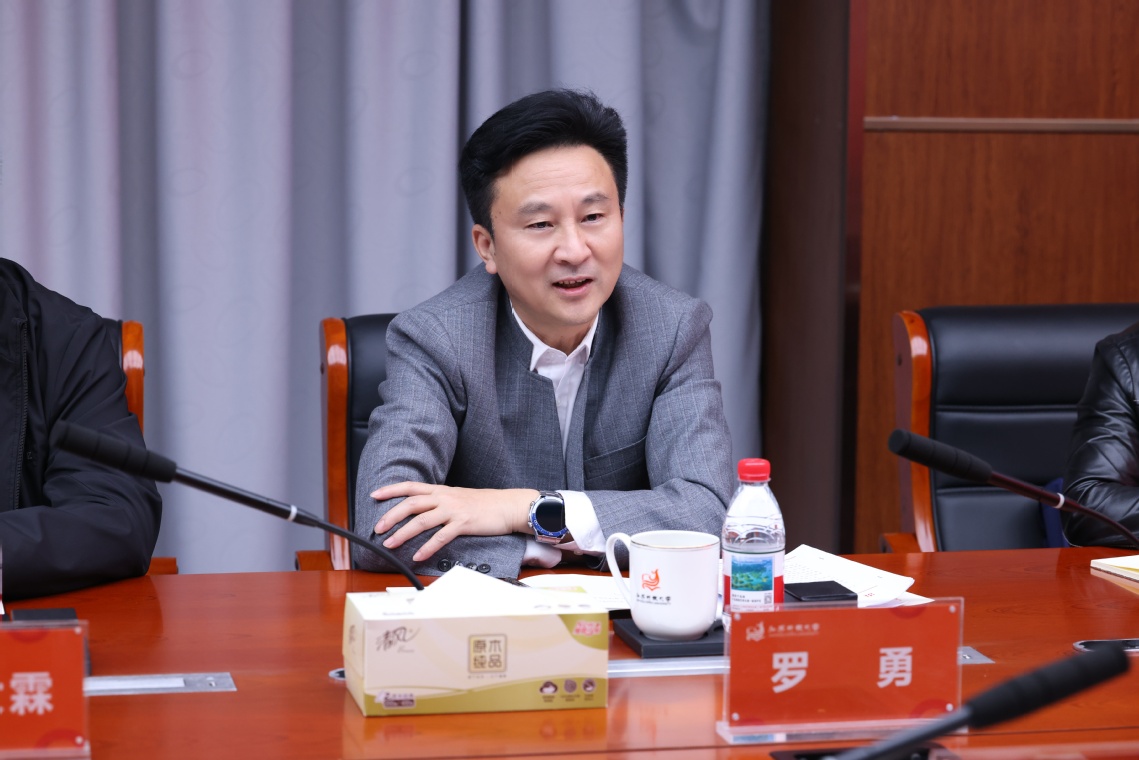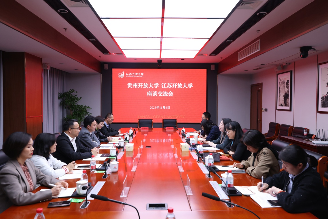 张迎春对罗勇一行的到访表示欢迎,并介绍了我校的办学情况与“十五五”发展思路。她指出,面对人口结构的深刻变革与数智技术的加速迭代,开放大学必须把握机遇、勇担使命,以系统思维推动改革创新。一是强化系统治理,推动四类教育融合发展。开展“四类教育”协同发展路径的专题研究,着力破解深层次体制机制障碍,加快构建“四类教育”有机衔接的高质量发展格局。二是深化技术赋能,筑牢教育教学质量根基。以教学智慧平台升级为牵引,强化大数据、人工智能等技术与教学全过程的深度融合,构建覆盖智能监考、学业预警与学习行为分析的全链条质量保障体系,全面提升教育教学质量。三是坚持开放融合,构建新型办学生态。以“三千开放教授”计划为引擎,汇聚行业顶尖技能人才,构建开放式师资队伍;以学分银行为枢纽,融合学历与非学历教育体系,实现学习成果的全面互认与成长路径的多元贯通。她表示,贵州开放大学在职业教育、产教融合及学生竞赛等方面积累了丰富的先进经验,希望以本次战略合作为契机,两校在专业共建、课程共享、师资共育等重点领域深化合作,共同构建东西部开放大学协同发展、互利共赢的新格局。