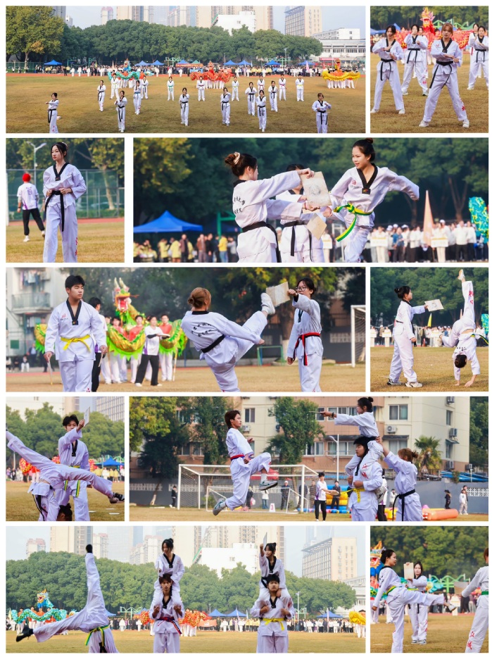 团体操表演精彩绝伦,将舞龙、花样跳绳与跆拳道等元素巧妙融合,既彰显中华文化的传统韵味,又展现当代青年的飒爽英姿,赢得现场阵阵掌声。